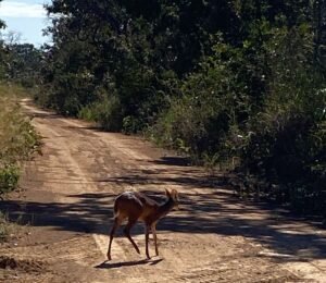 Acolhimento/Tratamento – A fêmea de veado-catingueiro, considerada pela equipe do hospital, um animal jovem, foi resgatada pelo Batalhão de Polícia Militar Ambiental (BPMA) no dia 17 de março nos arredores de Planaltina, após ser vítima de atropelamento. O BPMA a encaminhou imediatamente ao Hfaus, onde recebeu atendimento especializado.