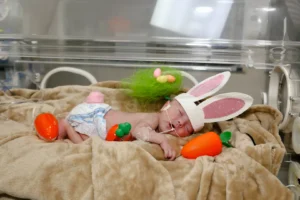 A rotina intensa ganhou uma pausa marcada por ternura. Inspirada pela Páscoa, a iniciativa levou bebês internados na unidade a participarem de um ensaio fotográfico realizado na última terça-feira (7).
