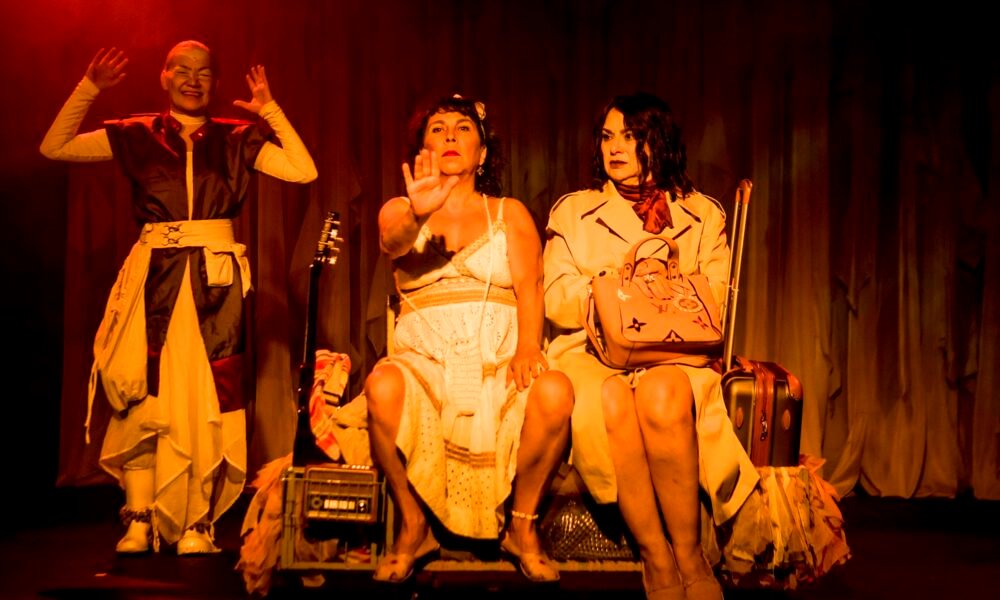 Cláudia Andrade (Gimena) divide a cena com Eloisa Cunha (Silvia) e Genice Barego (Gaivota), atrizes também 50+. A remontagem apresentada ao longo da circulação revela um trabalho mais maduro, fruto do aprofundamento das personagens e da escuta atenta do público em cada cidade. A encenação incorpora ainda videoarte e videomapping de Aníbal Alexandre, iluminação de Lemar Rezende e trilha sonora original de Mateus Ferrari, compondo uma obra híbrida que cruza linguagens e amplia as possibilidades da cena contemporânea.