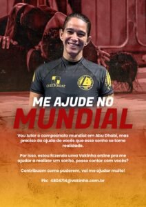 “Estou em busca de patrocínio para competir o mundial de jiu-jítsu de Kimono que será realizado em Abu Dhabi ( Emirados Árabes ) nos dias 11 e 12 de novembro de 2024,