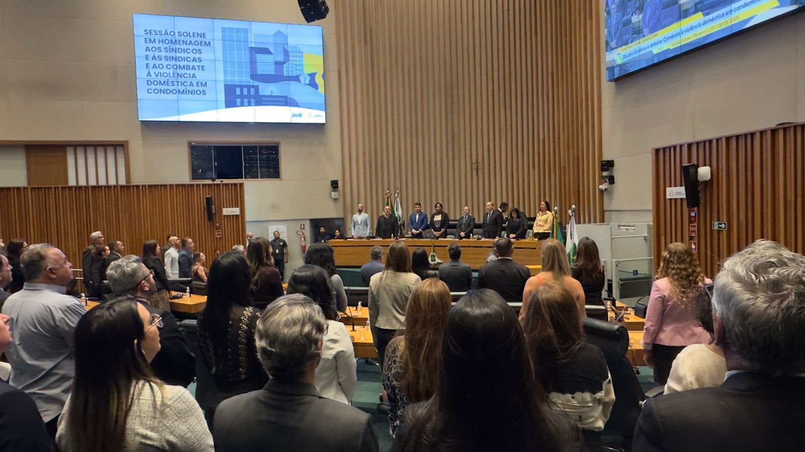 Na noite desta quarta-feira (28), a Câmara Legislativa do Distrito Federal foi palco de uma Sessão Solene histórica, proposta pela deputada Doutora Jane, que homenageou síndicos e síndicas, considerados verdadeiros guardiões da convivência urbana. O evento promoveu o debate sobre o combate à violência doméstica em condomínios.
