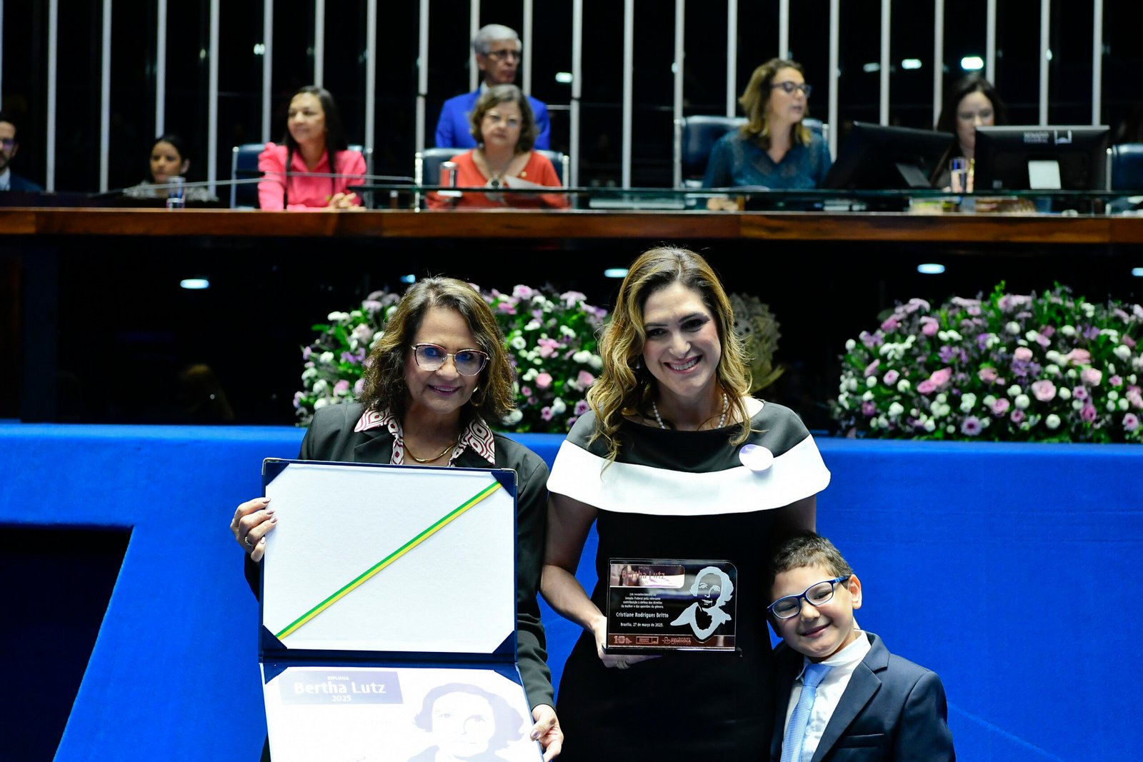 Em clima de festa e emoção, o Senado Federal entregou, nesta quinta-feira (27/3), o Diploma Bertha Lutz, a maior honraria da Casa Alta para quem luta pelos direitos das mulheres, a 19 brasileiras de destaque. Entre elas, uma presença mais que especial: Cristiane Britto, ex-ministra da Mulher, da Família e dos Direitos Humanos no governo Bolsonaro.
