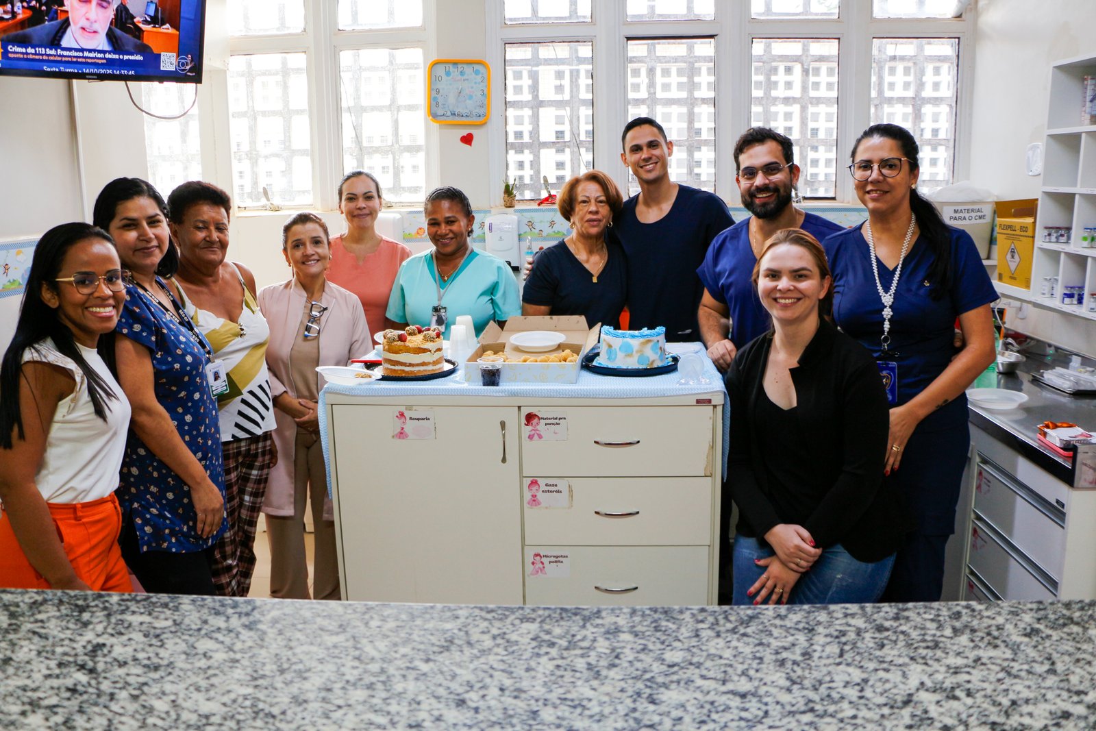 Os colegas de trabalho do HRBz organizaram uma festa em comemoração aos 50 anos de Marilene no hospital: “Servir ao outro é um privilégio que poucos compreendem, e meu coração está cheio quando vejo que cumpri com amor e carinho essa trajetória”