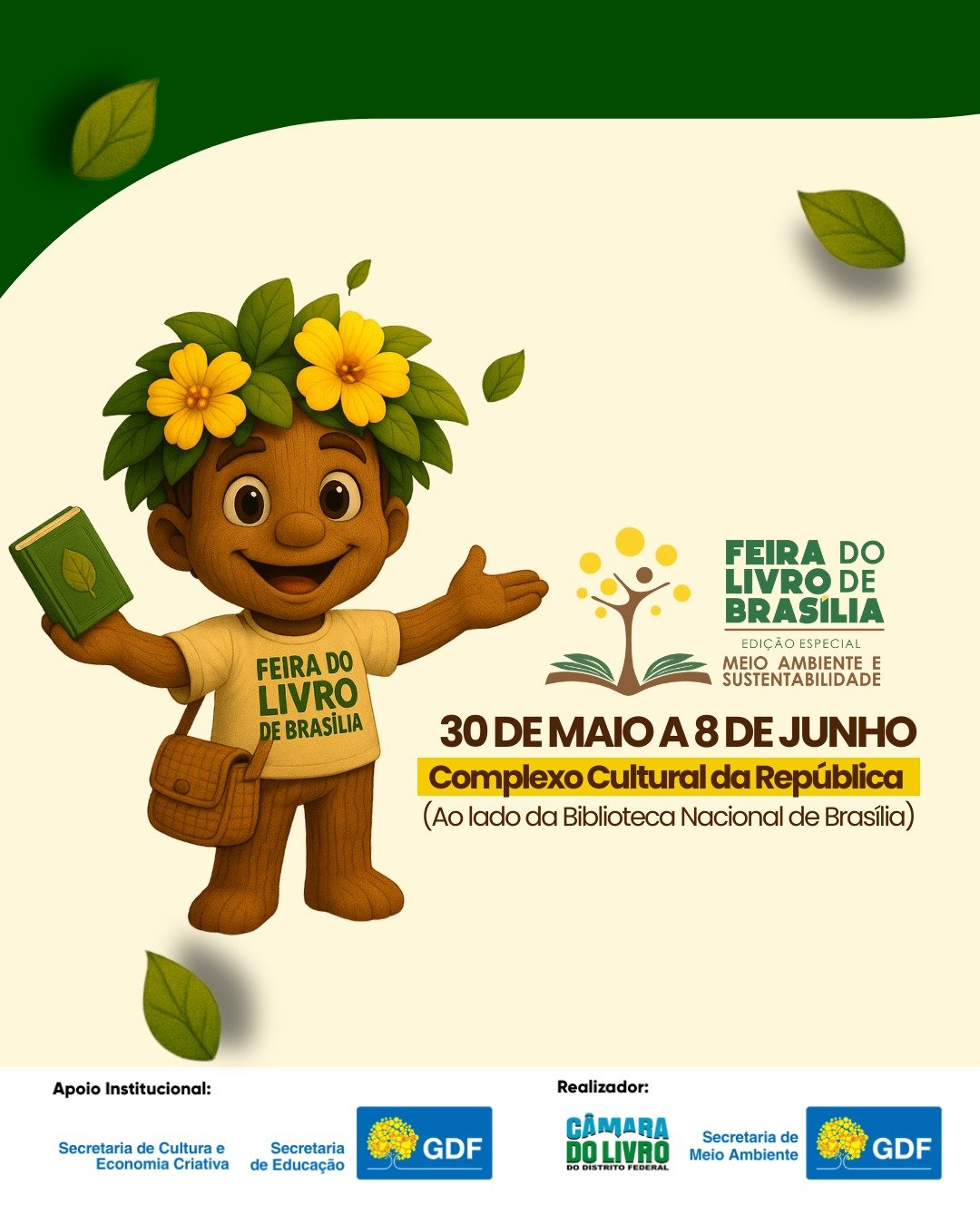 Realizada pela Câmara do Livro do Distrito Federal com o apoio da Secretaria de Meio Ambiente e Proteção Animal do DF (SEMA-DF), a Feira une dois mundos que têm tudo a ver: o poder da palavra e a urgência da preservação ambiental. Em um momento em que o planeta pede atenção, Brasília se antecipa às discussões globais da COP30 e reafirma seu compromisso com o futuro, por meio da arte, da educação e da cultura.