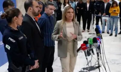A governadora em exercício Celina Leão falando a jornalistas, esta – Foto: Bruno Peres/Agência Brasil. Polícia trata morte na porta do STF como suicídio, diz governadora...